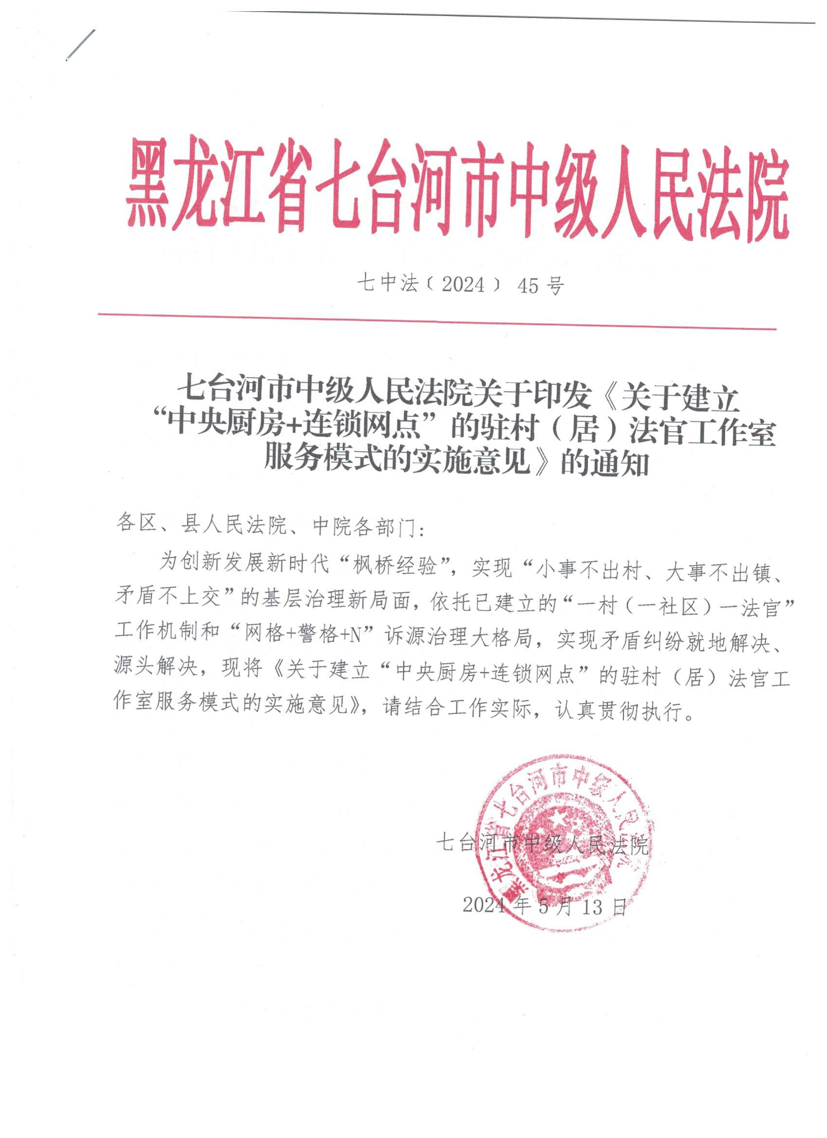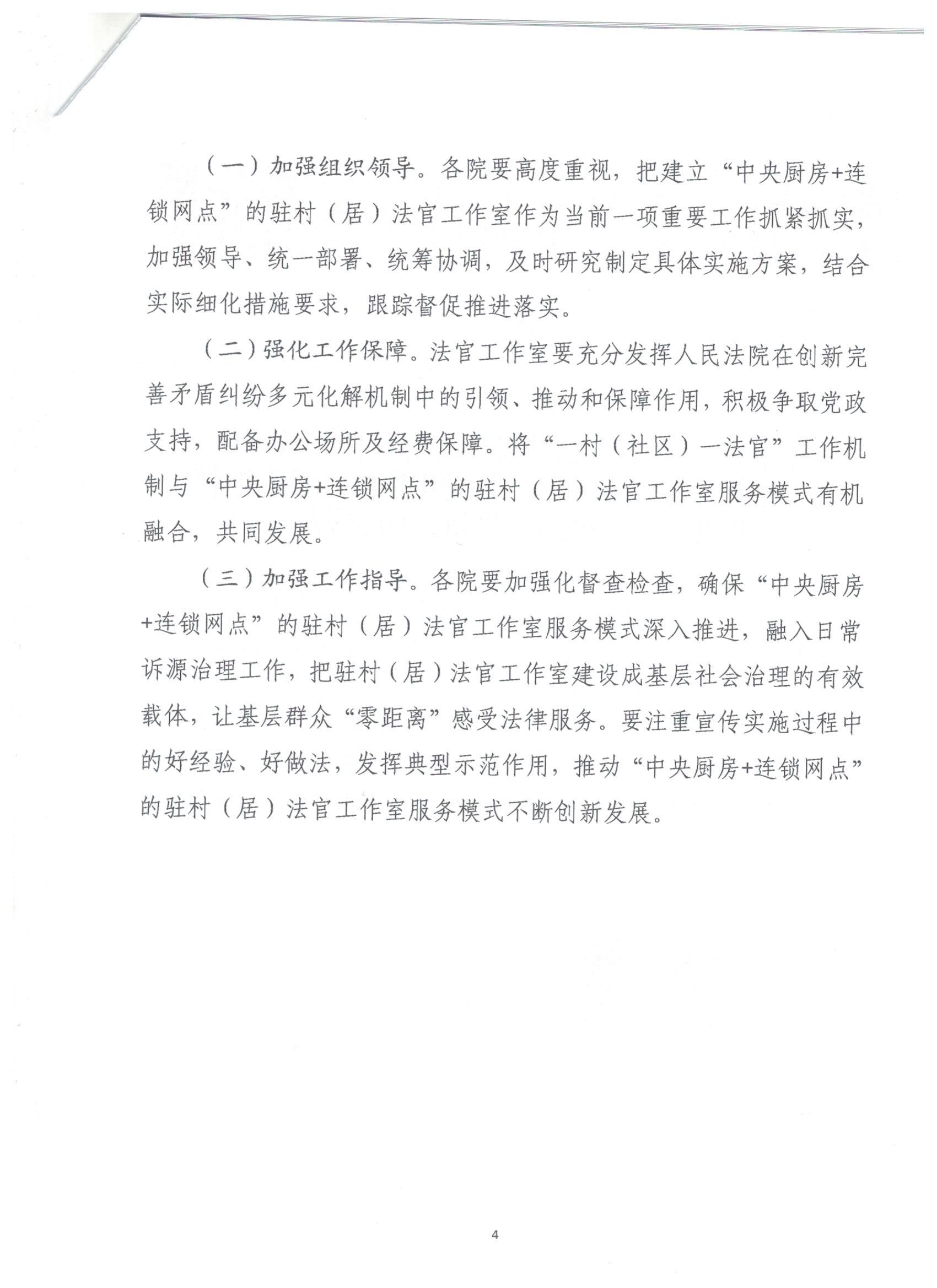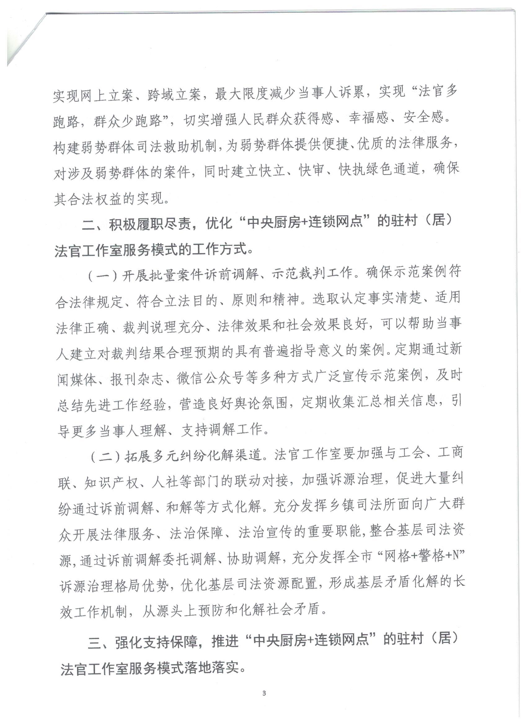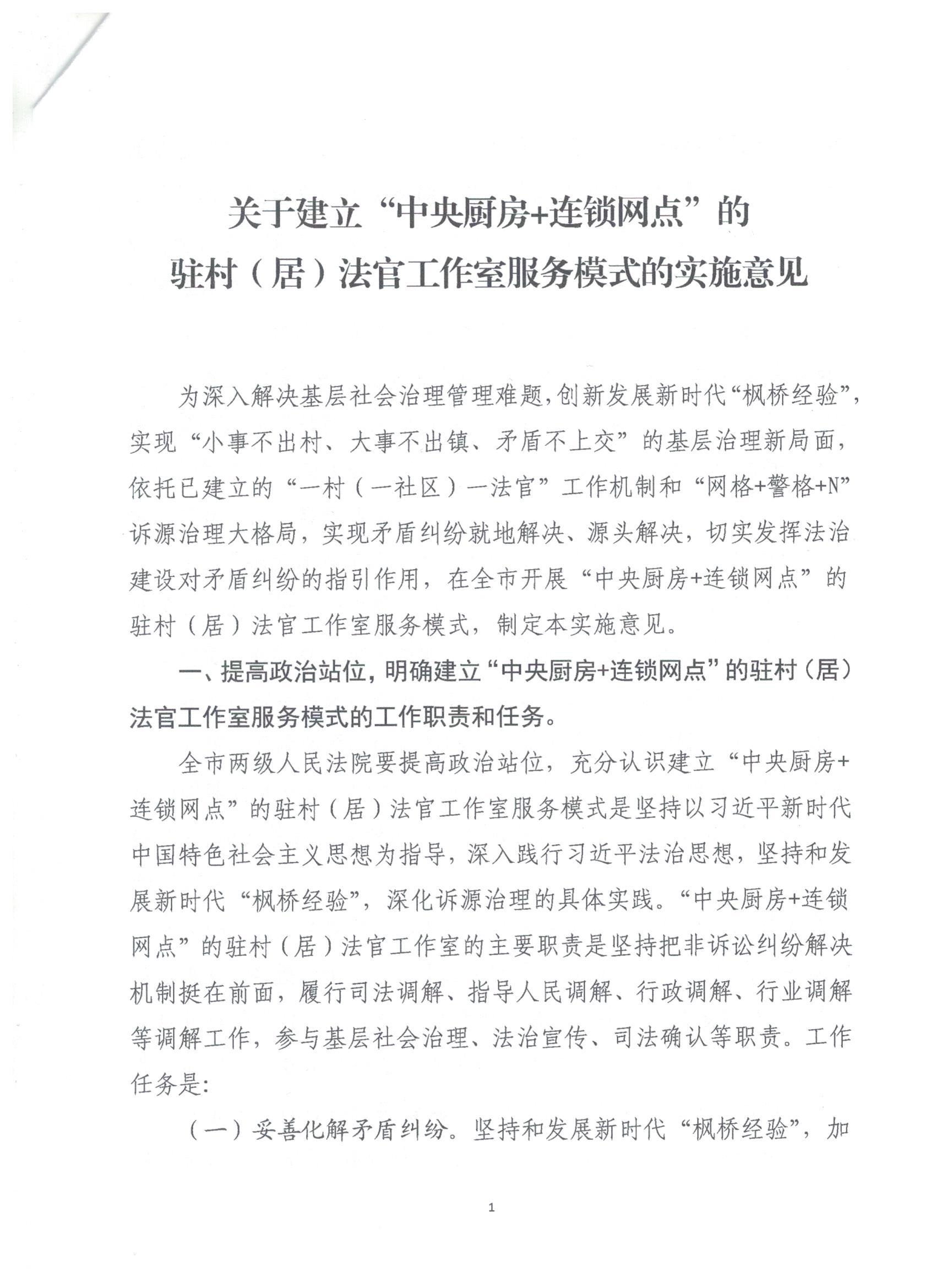关于建立“中央厨房+连锁网点”的驻村(居)法官工作室服务模式的实施意见