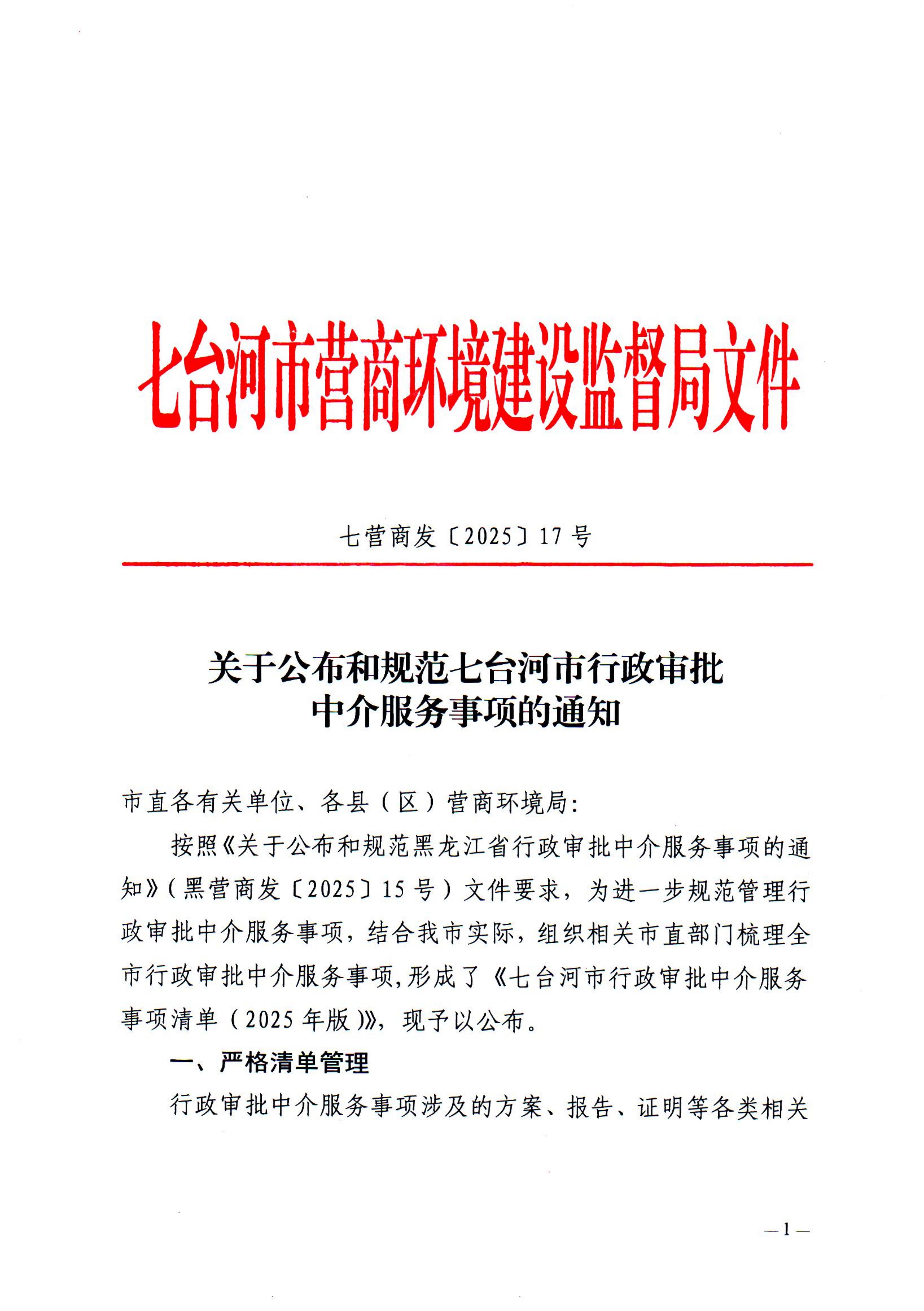 关于公布和规范七台河市行政审批中介服务事项的通知